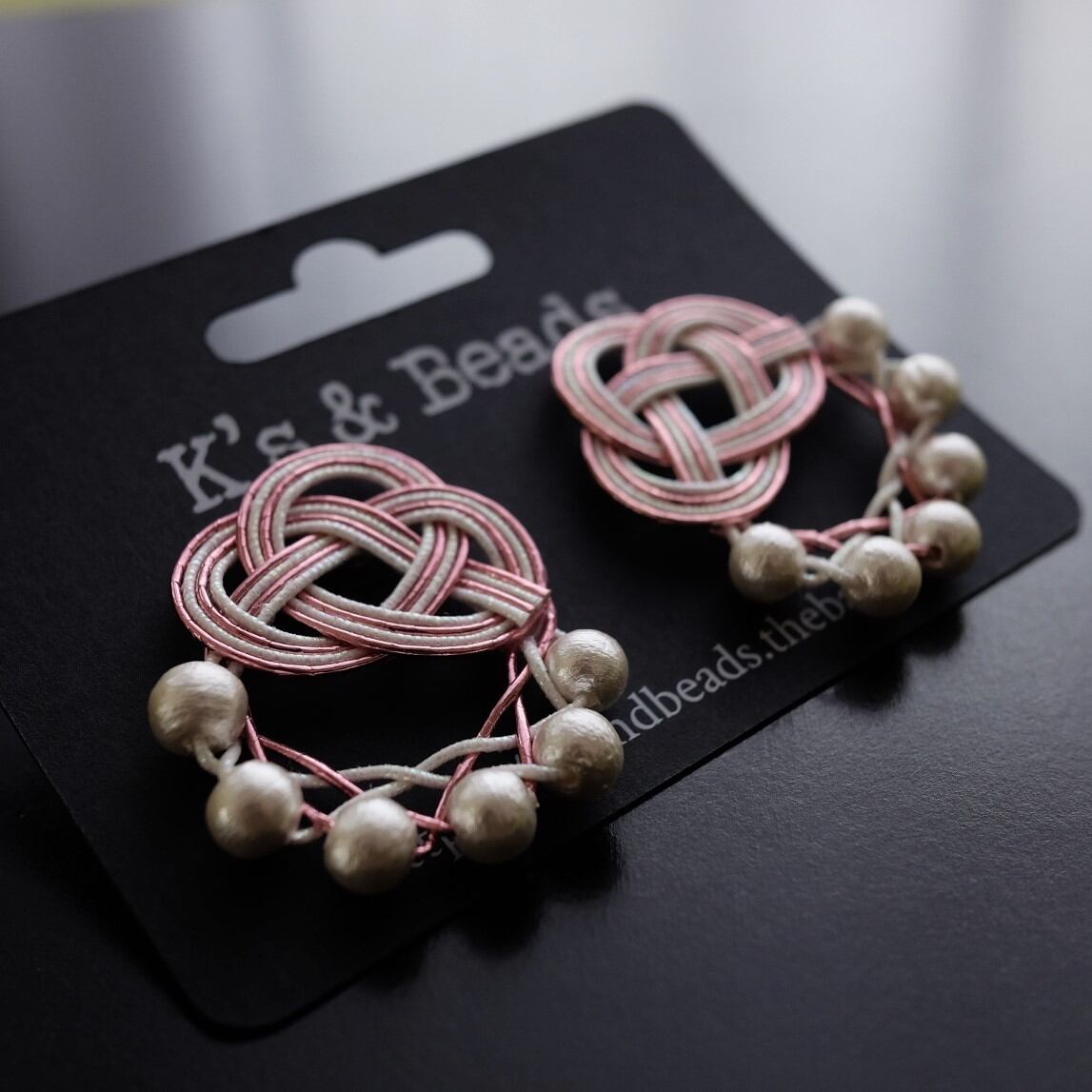 こちらのアイテムは、そんなデザインを、水引とコットンパールで表現したもの。どちらのマテリアルも最高の軽さ。