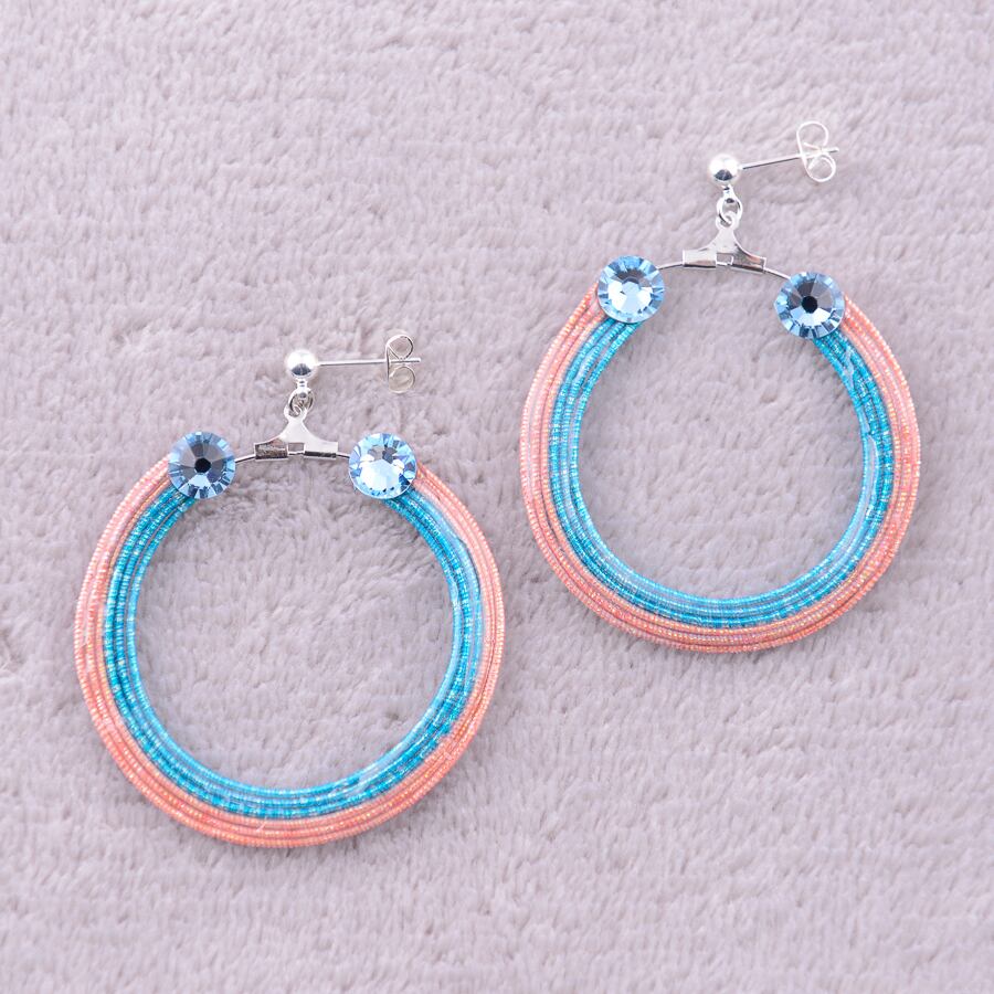 ライトブルーとピンクを合わせたカラフルなフープピアス。