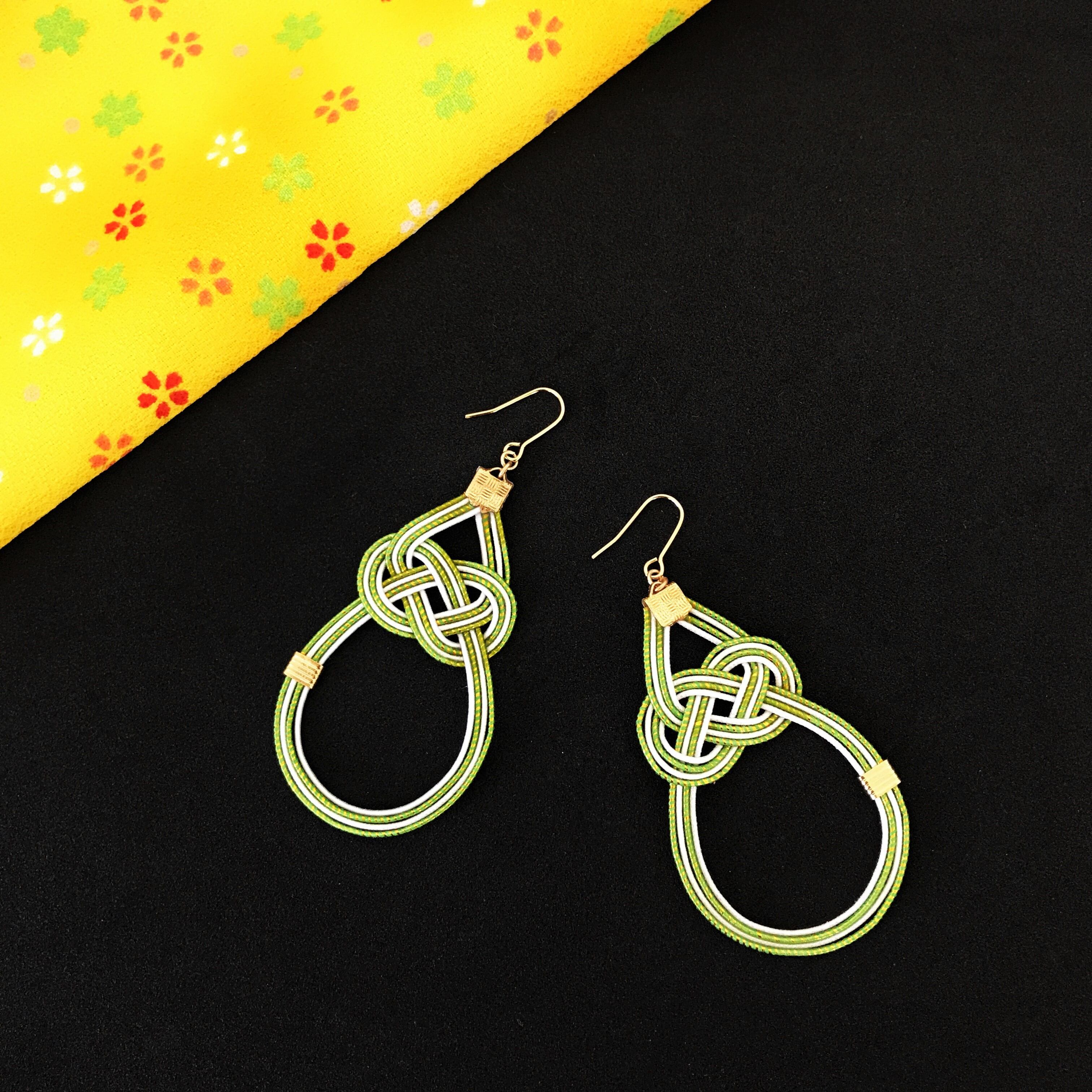 グリーンとホワイトの落ち着いたカラーコンビの和風フープピアス/イヤリング。
