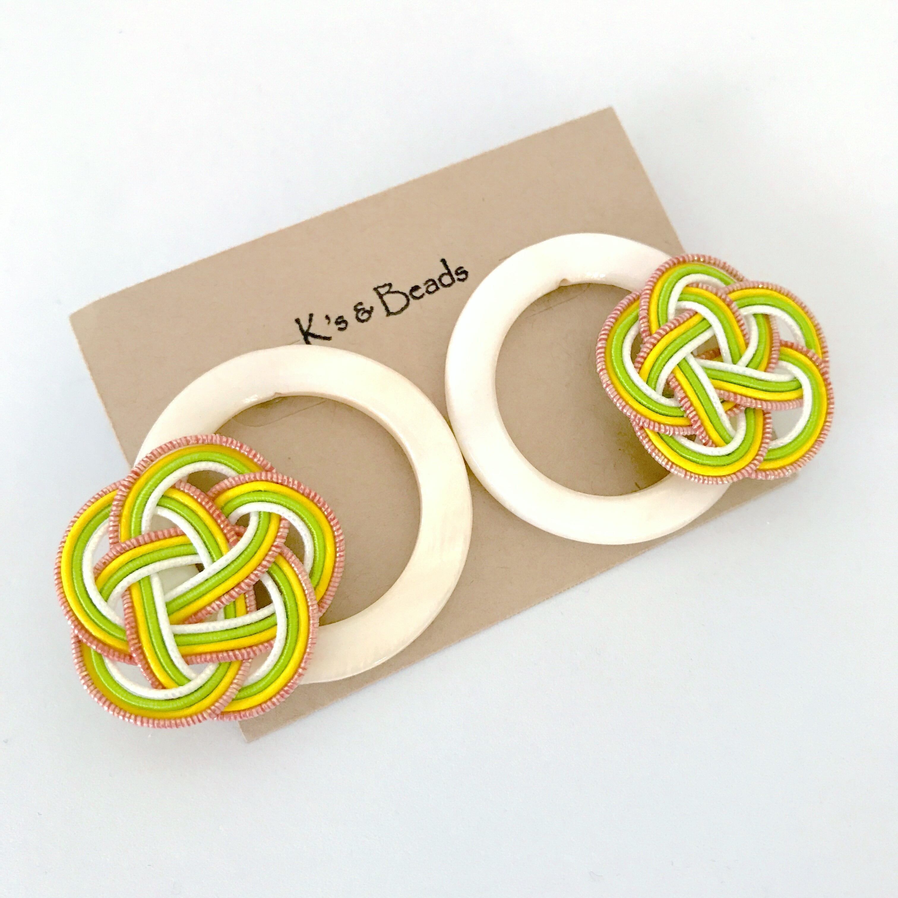 白いフープパーツにお花を添えてキュートに仕上げた和風ピアス。
