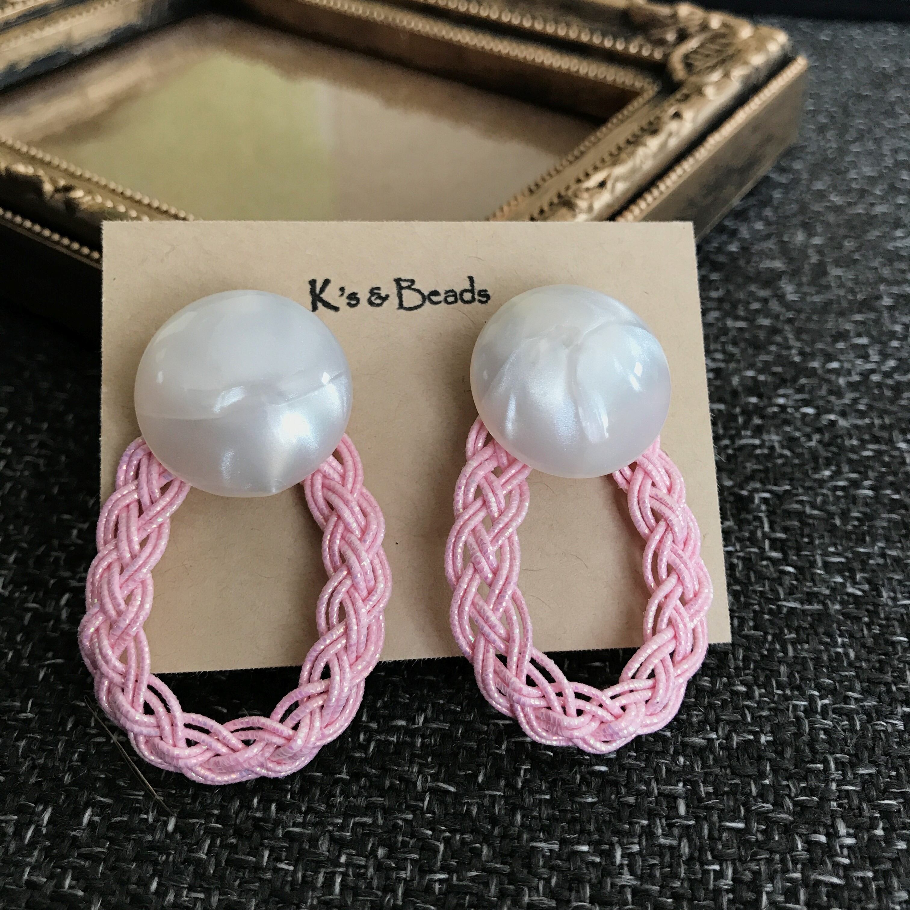 ポップカラーピアス・シリーズの一つ。こちらはホワイトとピンクのマッチング。